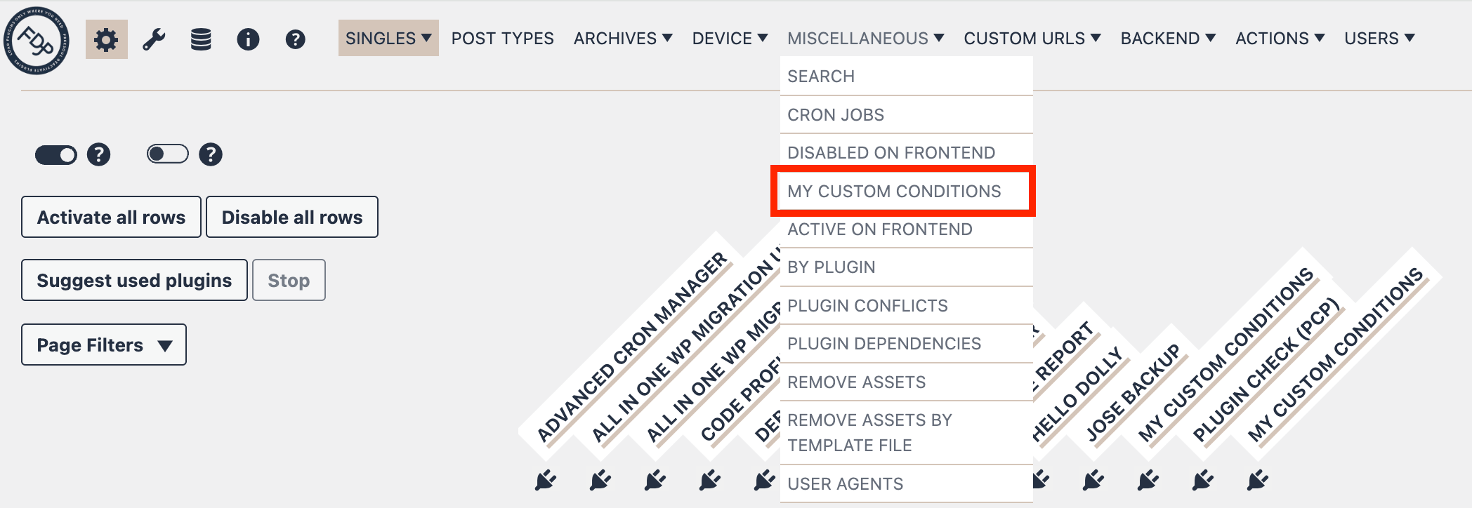 This feature is useful when the built-in FDP rules are not enough and you want to apply plugin deactivation based on your own PHP conditions.